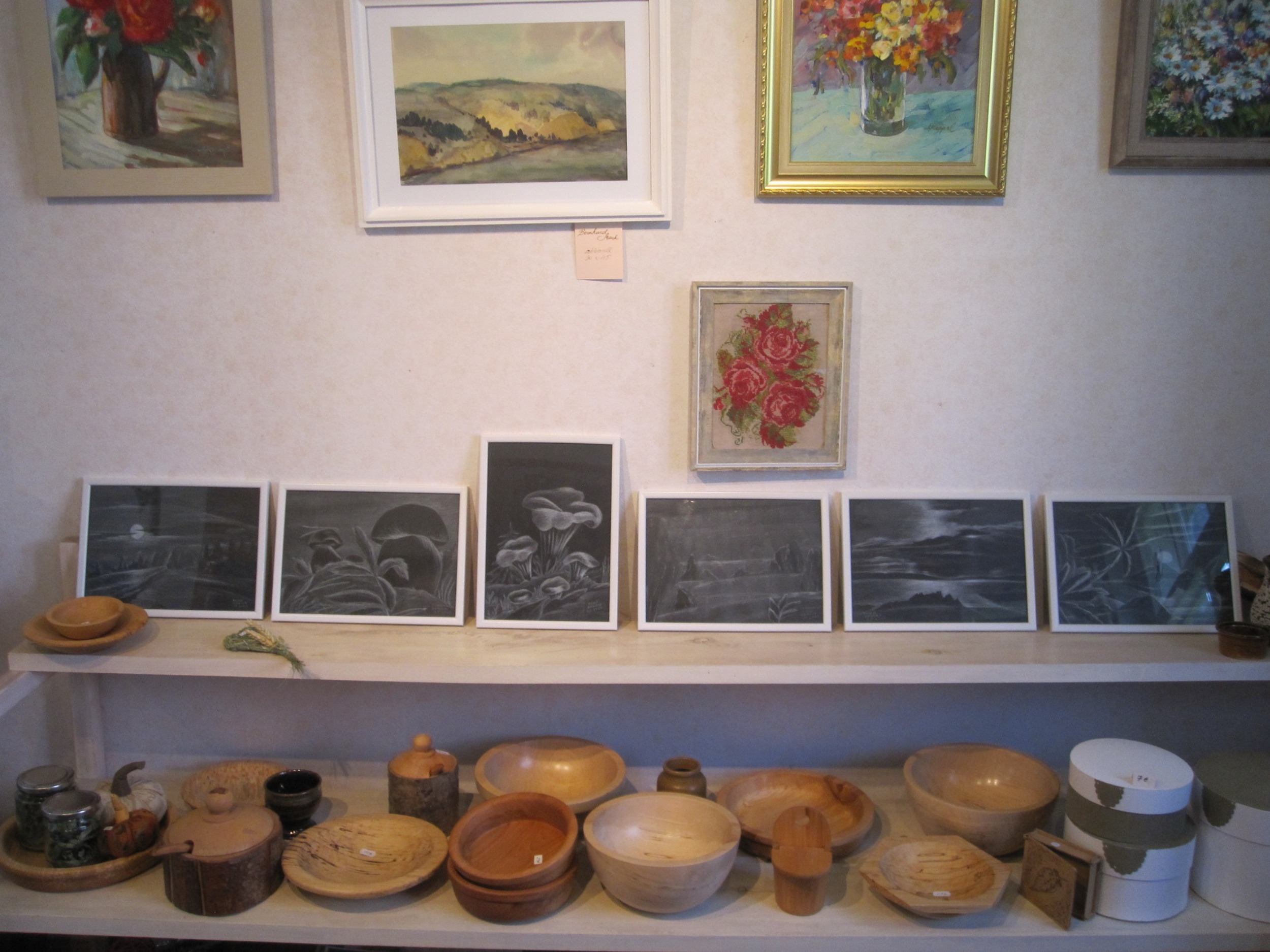 Võru linna peatänava ääres õdusas sisehoovis asuvas Aino Tambergi Kunstipoes on müügil paljude Võrumaa kunstnike ja käsitöömeistrite tööd – maalid, postkaardid, keraamika, ehted, meened.