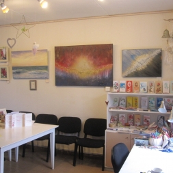 Aino Tambergi Kunstipoes valitseb rahulik ja kodune õhkkond, mis kutsub korraks argipäeva kiirust peatama ja nautima loomingulist atmosfääri. See on paik, kus kunst sünnib südamest ja leiab tee iga külastaja ellu.
